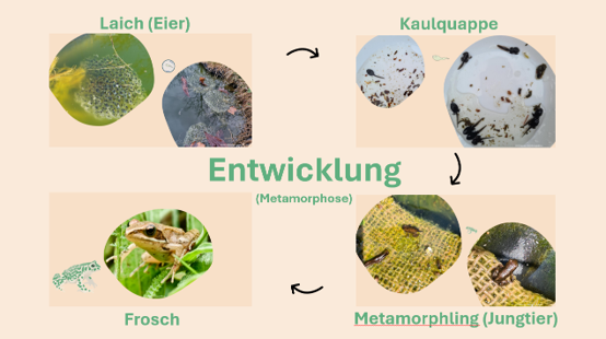 Gemeinsam nahmen wir den Lebenszyklus von Amphibien genauer unter die Lupe und stellten dabei fest, dass diese Tiere sowohl Wasser- als auch Landlebensräume benötigen – Lebensräume, die jedoch immer seltener werden. Wir lauschten den unterschiedlichen Rufen heimischer Amphibien und schauten uns an, wie Kröten und Frösche unterschieden werden können. Am Ende nahmen die Schüler*innen nicht nur ihre selbst gebastelten, hüpfenden Papierfrösche, sondern auch viel neues Wissen über diese faszinierenden, oft leicht übersehbaren Tiere mit nach Hause.